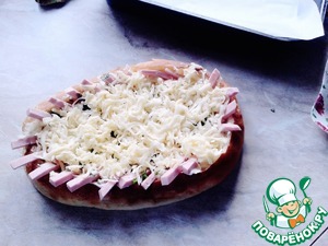 Натереть на тётке сыр, покрыть им колбасу, поперчить.