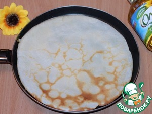 • 2. Выпекаем блины на смазанной растительным маслом (немного) и хорошо прогретой сковороде с двух сторон.
