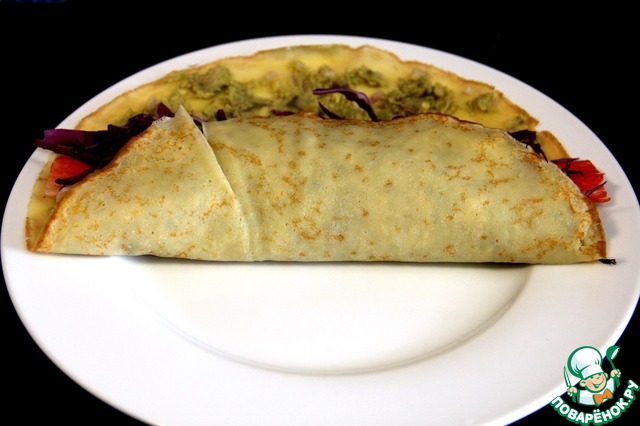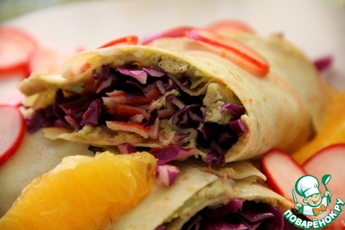 Рецепт «Блины с крабовым мясом, гуакамоле и цитрусом»: