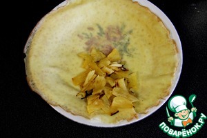 На середину половины блина кладем приготовленные ананасы (примерно 3 ст. л. на каждый блин)