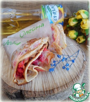 Выложить начинку на половину блина, сложить пополам.