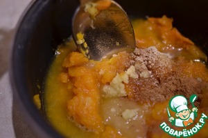 Тыкву перетираем в пюре, добавляем сок апельсина и цедру (по желанию)