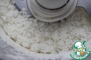 Самое главное для ее приготовления - это мощный блендер и терпение. :) В блендер положить кокосовую стружку и сахарную пудру и измельчать на высоких оборотах 2 минуты.