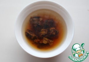 Финики залить горячей водой и оставить на 15 минут. Затем воду слить.