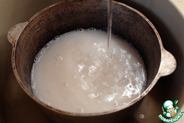 Залейте водой. Поставьте на сильный огонь и доведите до кипения.