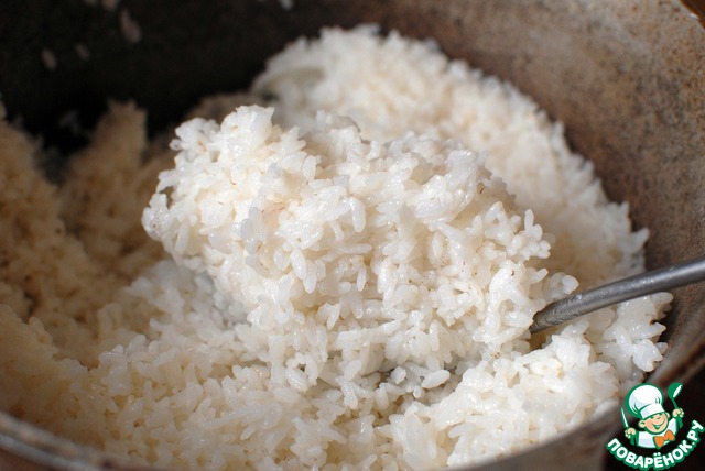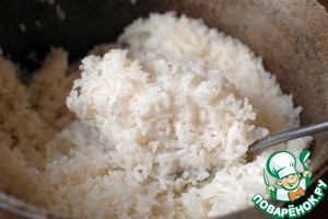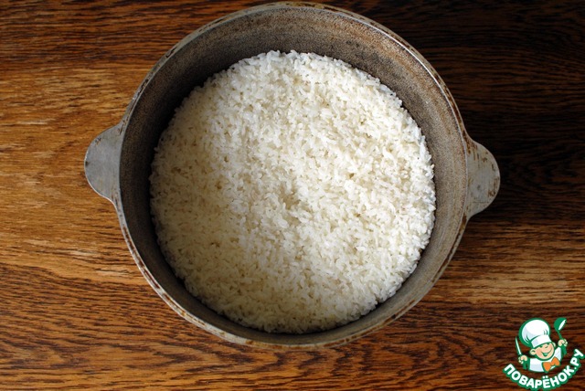 Перекладываю рис в большую емкость и, пока он остывает, готовлю заправку.