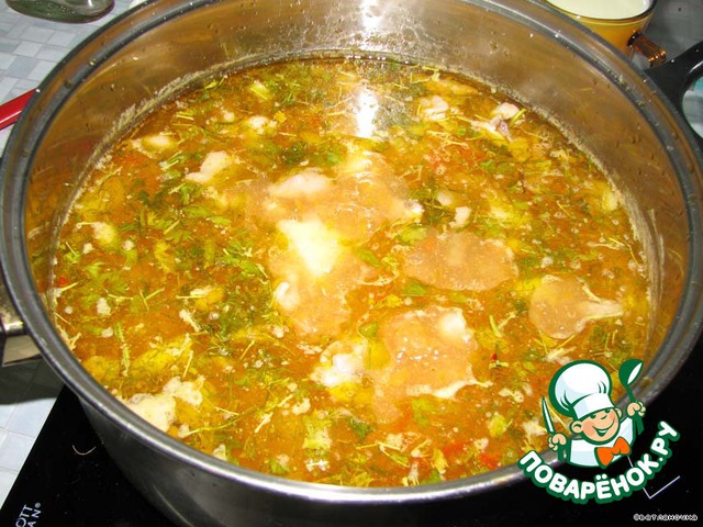 За 5 минут до готовности добавить рубленый чеснок и зелень.