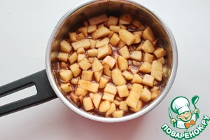 Яблоки залить водой, добавить какао, корицу и сахар.