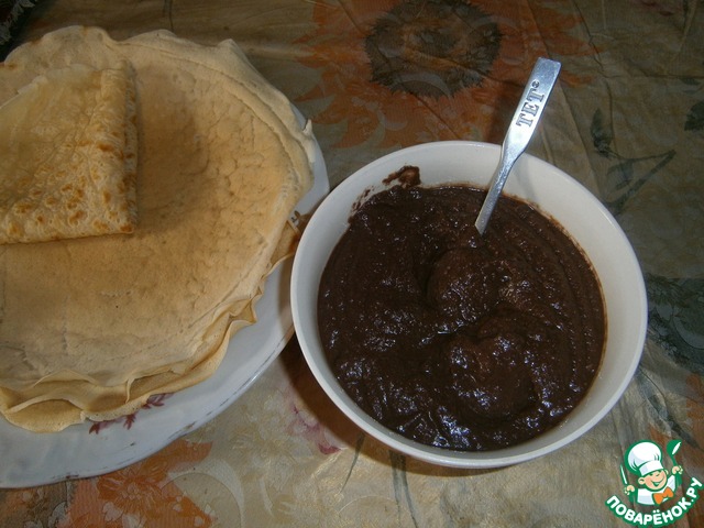 Рецепт «Овсяные блины с шоколадно-яблочной пастой»: