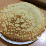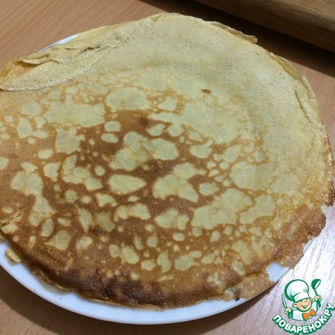 Разогреть сковороду и немного смазать маслом. Налить тесто тонким слоем и выпекать на среднем огне 35-40 секунд. Перевернуть и готовить еще 15 секунд.