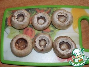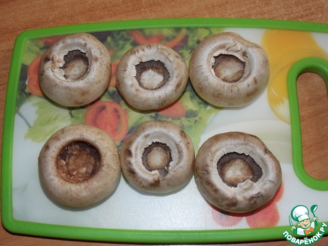 У грибов отделить ножки от шляпок. Понадобятся только шляпки.