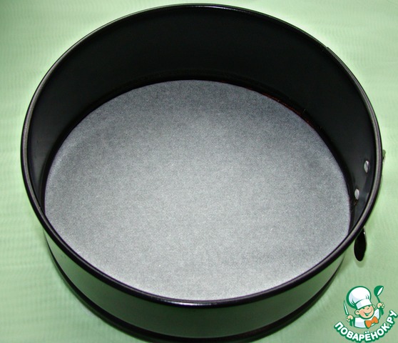 Форму для выпечки со съемными бортиками (24 см) застелить пекарской бумагой и смазать сливочным маслом (я не смазывала)