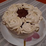 Для украшения торта - взбить оставшуюся часть сливок с 3 ст. л. сахарной пудры и обмазать верх и бока торта.
