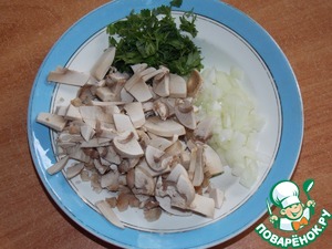 Грибы, лук и зелень нарезать.