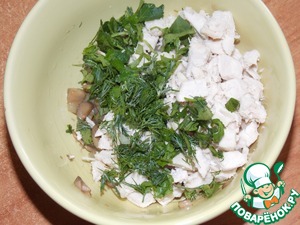 Куриное филе мелко нарезать.