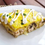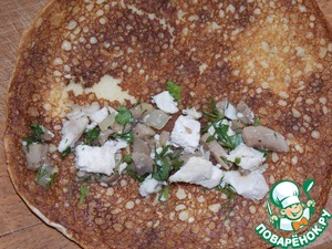 Блинная запеканка с курицей и грибами