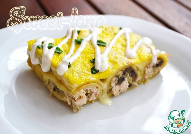 Рецепт «Блинная запеканка с курицей и грибами»: