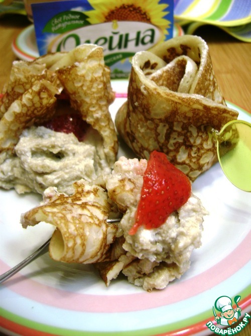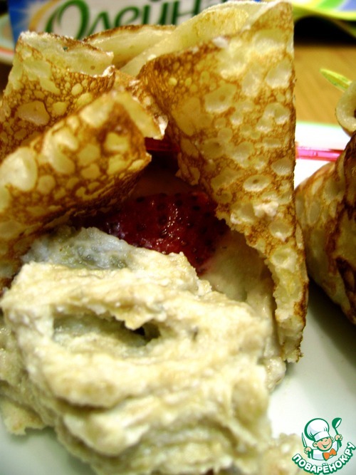 Рецепт «Нежные блинчики с рикоттой и халвой»: