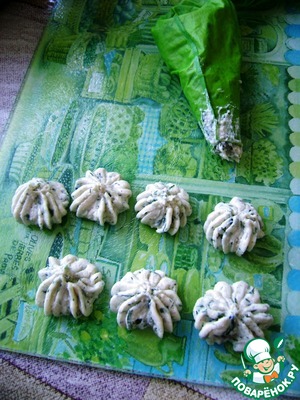 Затем вставить насадку зубчиками и отсадить на холодную доску небольшие «ракушки». -