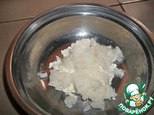 Творог протереть через сито, добавить 1 или 2 столовые ложки сметаны, в зависимости от сухости творога, горчицу. У меня творог домашний, очень нежный, и, за неимением сметаны, я добавила 1 ст. л. натурального йогурта. Дайкон очистить, натереть на мелкой терке, чеснок пропустить через чеснокодавку, добавить к творогу, хорошо перемешать.
