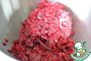 Я складываю эту свекольную смесь в коробку и ставлю в холодильник. -