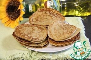 Готовим оладьи. Смешиваем молоко, яйца, подсолнечное масло и соль. Добавляем муку и мешаем до однородности. Ставим в холодильник на 30 минут. Затем выпекаем оладьи с использованием подсолнечного масла ТМ "Олейна".