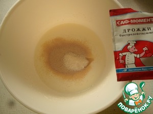 Дрожжи и сахар растворяем в теплом кефире, даем дрожжам "зароботать".
