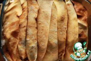 Очень вкусный "блинный пирог". Ароматный, сытный, сырный и легкий в приготовлении!