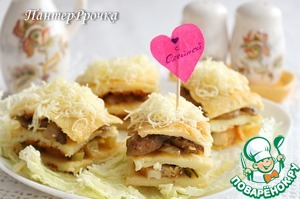 [+5]Восхитительные блинчики получились! Сказать что это вкусно, значит ничего не сказать! Это ооочень вкусно!!! Шикарное тесто! Начинка супер! Готовила уже несколько раз, мне настолько понравилось их печь! Так легко и просто! Вкус потрясающий!!! Нежнейшие получаются! Форма круглая, 26Х26, выходит 3 блина, тесто замечательно снимается, ничего не липнет! Одно удовольствие! Делала в разных вариантах. Жаль что фото только одно можно прикрепить.. У меня и квадратиками, и рулетом, и мини тортиками они подавались! Мы все полюбили эту прекрасную закуску! Огромное спасибо милая, за такой великолепный рецепт!!!