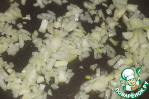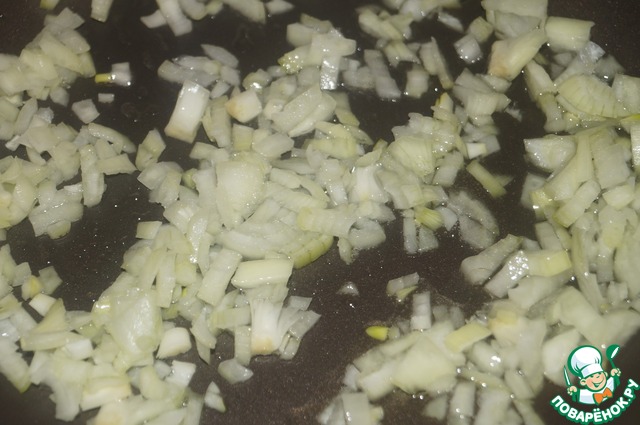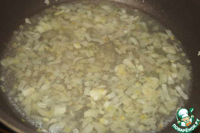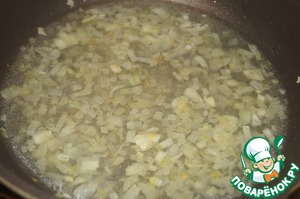Для соуса: мелко нарезать очищенный лук. На сковороде разогреть масло, выложить лук, лавровый лист и чеснок, и долго тушить на слабом огне, до мягкости лука.