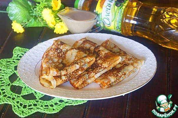 Выпечь блинчики на разогретой сковороде смазанной тонким слоем подсолнечного масла