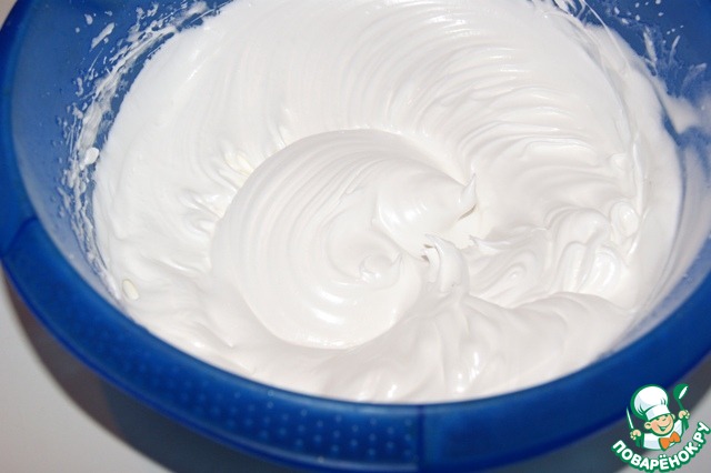 Меренга должна получиться гладкой, блестящей и без комочков.