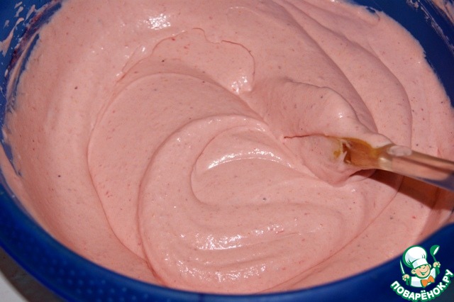Затем добавить ягодное пюре и перемешать лопаткой.