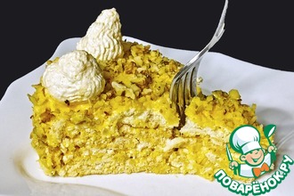 Сверху нанести половину крема и накрыть вторым коржом-безе.