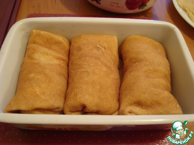 Из ингредиентов для блинов получилось 6 шт. блинов d-24 см. Блины довольно большие. Начинки в них можно положить много.
