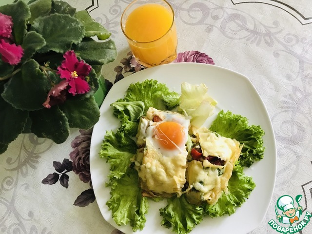 Рецепт «Блины с яичницей на завтрак»: