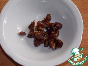 Из фиников удалить косточки, порезать на кусочки.
