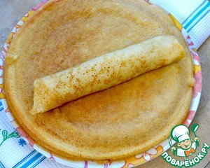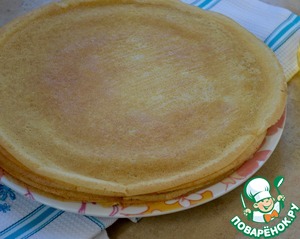 Приготовить тесто для блинчиков. Вы, безусловно, можете приготовить их и по своему любимому рецепту!... Или готовим блинчики на пиве. Для этого яйца растереть со сметаной, сахаром и солью. В два три захода попеременно добавить пиво и муку, просеянную предварительно с содой. Добавить растительное масло и тщательно перемешать, чтобы не было комочков. Готовое тесто отставить в сторону минут на 30.