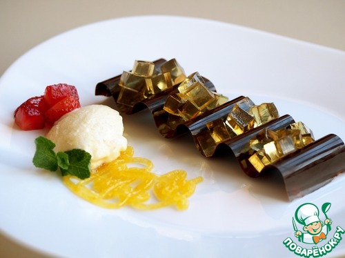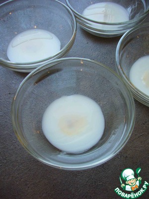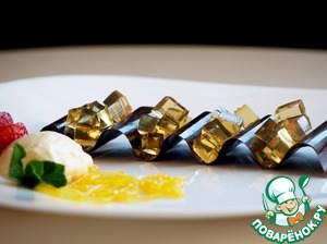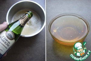 Шампанское смешиваем с растворенным желатином. Ставим в холодильник до его застывания примерно на 2 часа. -