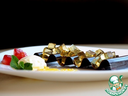 Полоску с шоколадом помещаем на заранее сделанную платформу, той формы, какой мы хотим видеть его в застывшем виде.
