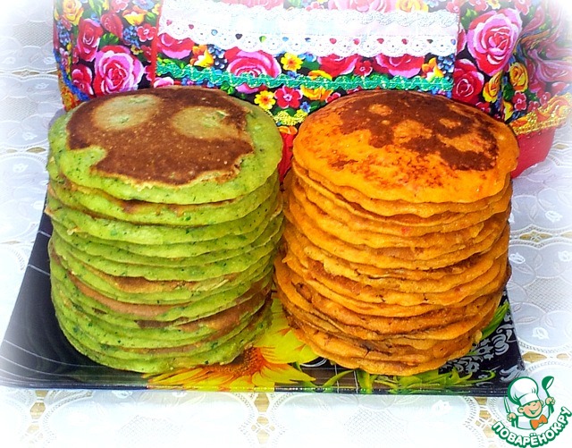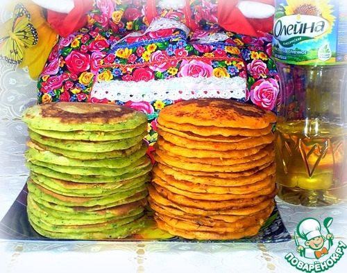 - Специи (блины зелёные - соль и перец, оранжевые - соль, по вкусу)