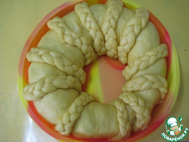Затем в кольцо, защипнуть швы. Уложить в форму для расстойки.