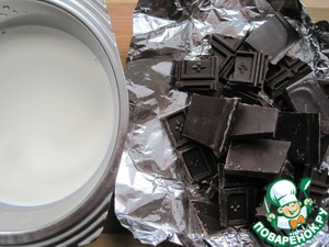 Для соуса: шоколад крупно порубим ножом. В небольшом сотейнике доведём до кипения сливки, убавим огонь.
