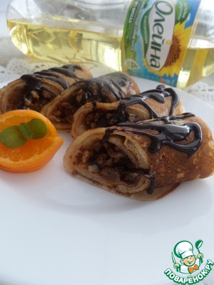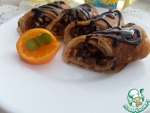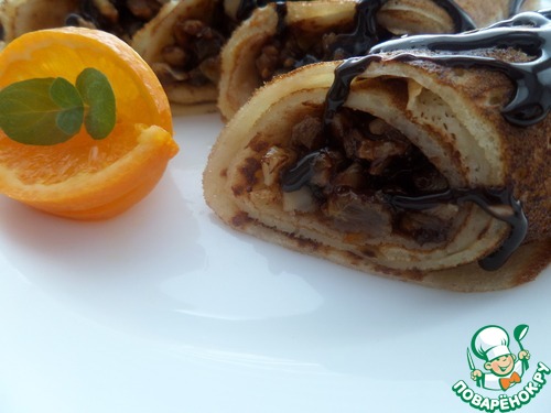 Рецепт «Блины на ряженке с ореховой начинкой»: