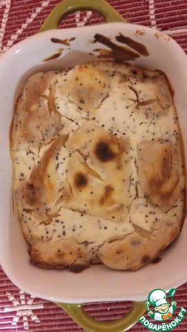 Блины с творогом в сметанной заливке