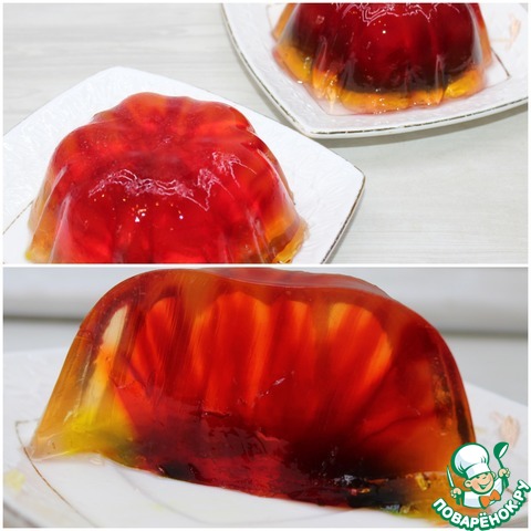 Разводим нагретый желатин остальным вином, тщательно перемешиваем и разливаем по предварительно подготовленным формочкам.