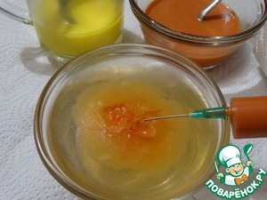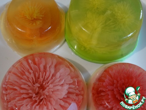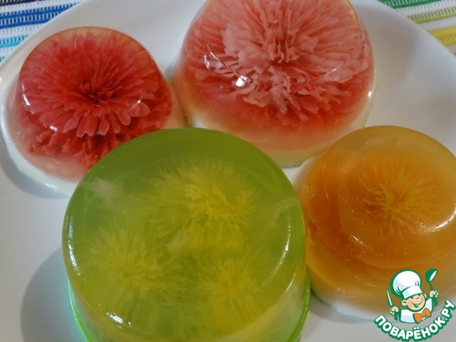 Делим прогретое белое желе на части - по количеству выбранных цветов, добавляем краситель до нужного цвета. -