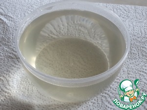 Набухший желатин прогреем в микроволновке или на водяной бане до полного растворения. Я всегда пользуюсь микроволновкой, ставлю на 30 секунд, если желатин растворился не весь, добавляю время нагрева еще на 10-15 секунд.
