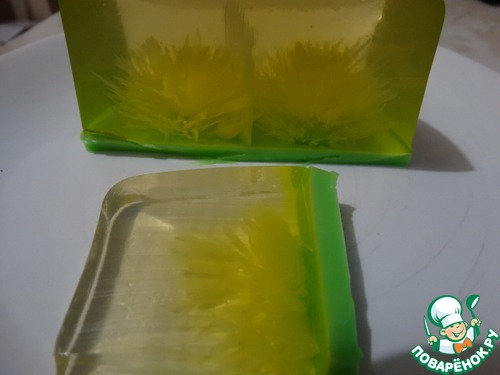 А здесь я пыталась сделать одуванчики. Но желтый цвет в вине все-таки теряется, а зеленый почти не виден.