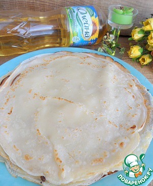 Выпекаем блины, смазывая сковороду растительным маслом ТМ "Олейна"